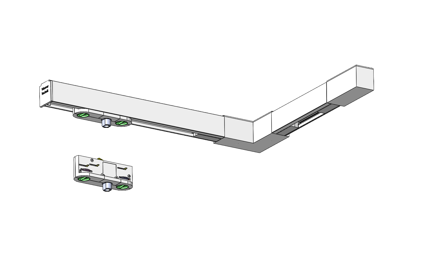 Stromschienensysteme Systembeispiel: bestehend aus 3-Phasen-Dali-Stromschiene Einspeiser, L-Verbinder, Endkappe und Universaladapter weitere Systeme: Hochvolt-Stromschienen, 1-Phasen, 2-Phasen, 3-Phasen und Dali Niedervolt-Stromschienen | Wiesner-Tech e.K. Im Siek 12 32699 Extertal tel. 05262-4149 info@wiesner-tech.de | ||